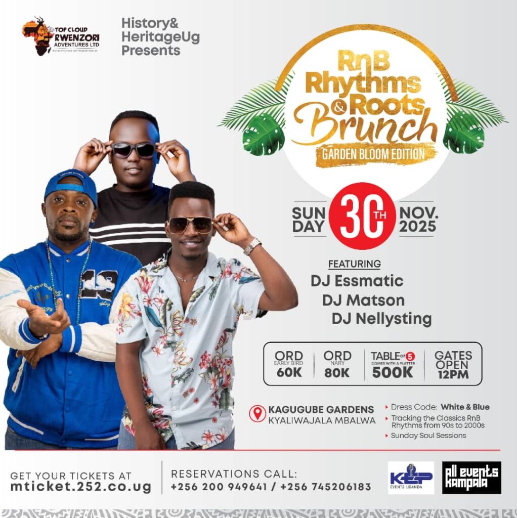 The brunch is the in thing at the moment and the latest on the menu is residents of Mbalwa, Kyaliwajjala, Kira, Kireka and Namugongo Road! The latest on our desk has it that RnB Rhythms Roots Brunch dubbed Garden Bloom Edition is set to rock Kagugube Gardens Mbalwa on November 30th 2025.